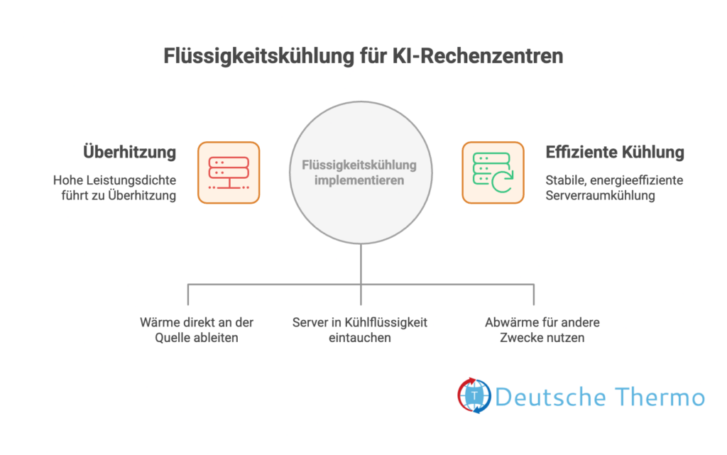 KI-Anwendungen erzeugen enorme Rechenleistung und damit hohe Wärmeentwicklung. Klassische Luftkühlung stößt hier schnell an ihre Grenzen. Moderne Flüssigkeits- und Immersionskühlungen sind deshalb entscheidend, um stabile Temperaturen und eine hohe Energieeffizienz sicherzustellen.